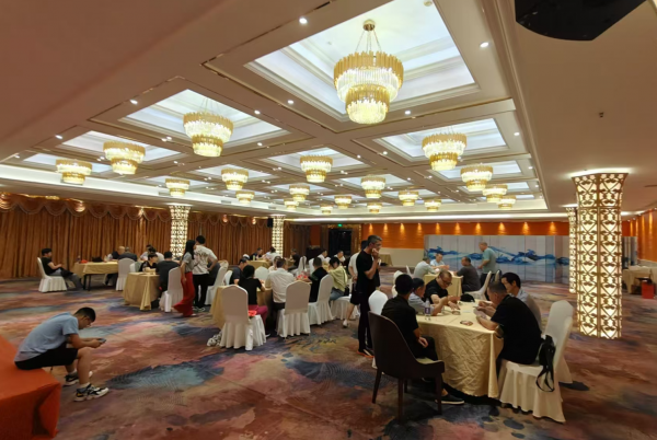 晚上回到入住飯店,公司工會(huì)組織開(kāi)展了一場(chǎng)摜蛋比賽,這次比賽有28位選手共14組參賽,比賽時(shí),選手們?nèi)褙炞ⅲ雠乒麛啵瑖^的同事們也時(shí)而緊張時(shí)而歡笑,現(xiàn)場(chǎng)氣氛熱烈非凡。最終第4組、第7組和第14組分別獲得*、亞軍和季軍。